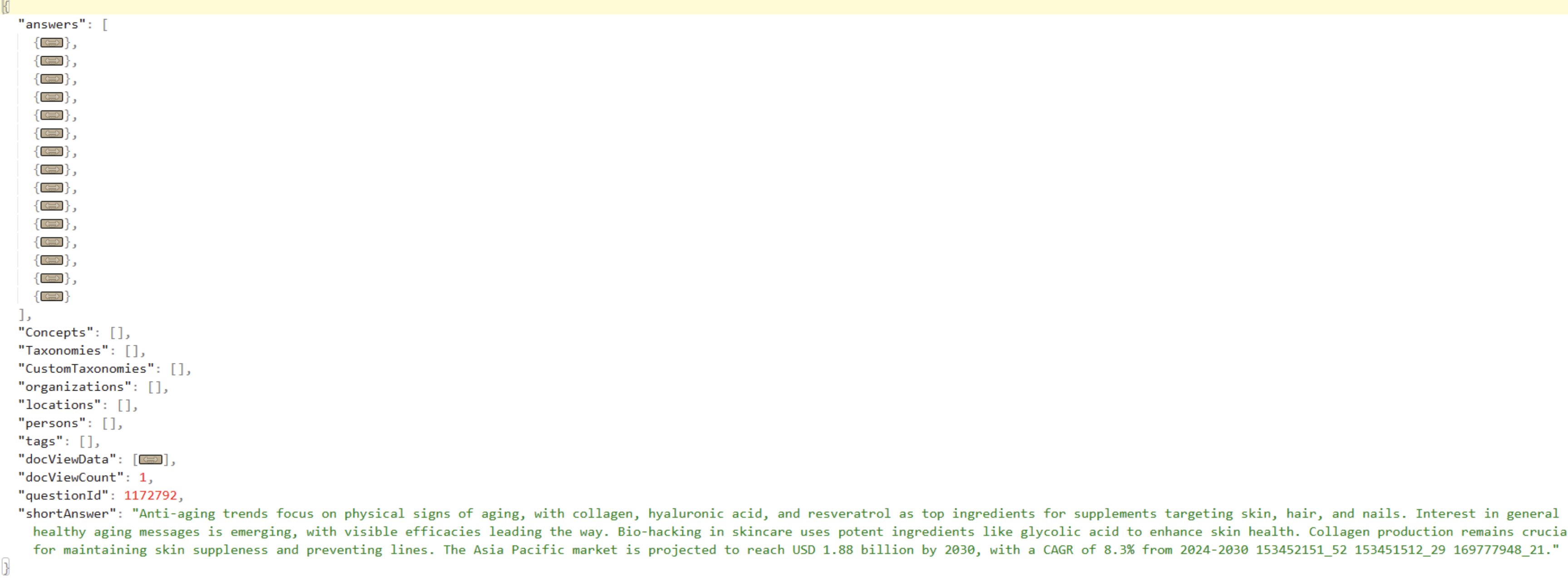 Synopsis API endpoint will return the same answers for the question/query along with a property called